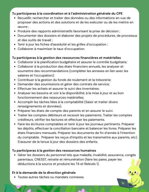 Nous recherchons une personne organisée, autonome et rigoureuse pour soutenir notre direction et assurer diverses tâches administratives et comptables.