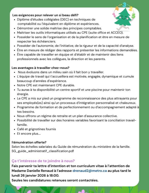Fais parvenir ta lettre d’intention et ton curriculum vitae à l’attention de Madame Danielle Renaud à l’adresse [email protected] au plus tard le lundi 26 janvier 2026 à 18:00.