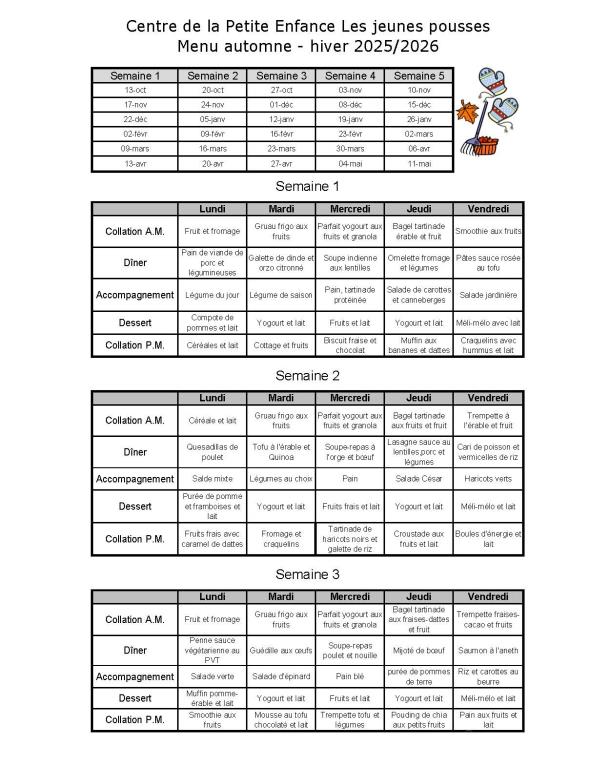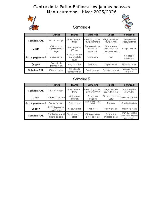 Menu offert au CPE