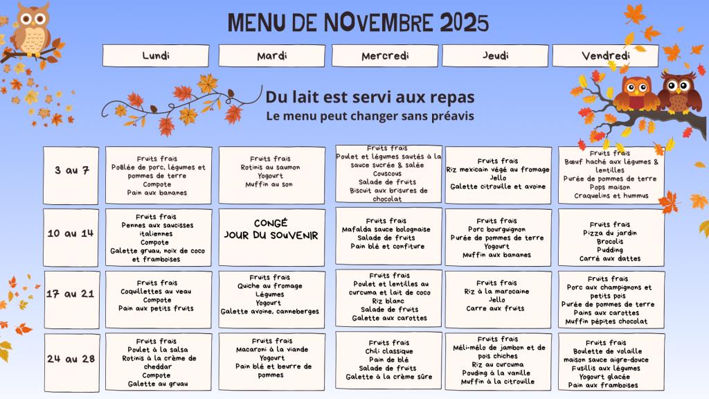 Menu du mois